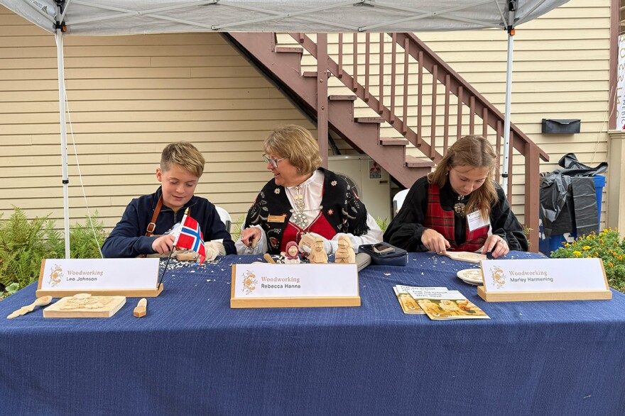 11-year-old Leo Johnson took up wood carving when he moved to the area about a year and a half ago. His mom, who worked at Vesterheim, introduced him to the folk art school offerings.
