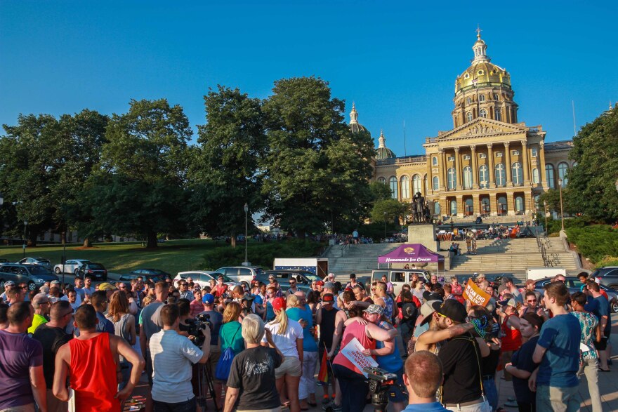 Several dozen people gathered Sunday evening on the west grounds of the Iowa Capitol, in honor of those killed in the Orlando mass shooting early Sunday morning. The deaths of at least 49 people and the wounding of 53 others at a gay nightclub came as Des Moines and other cities around the country were celebrating National LGBT Pride Month in the U.S. with parades and other events this weekend.