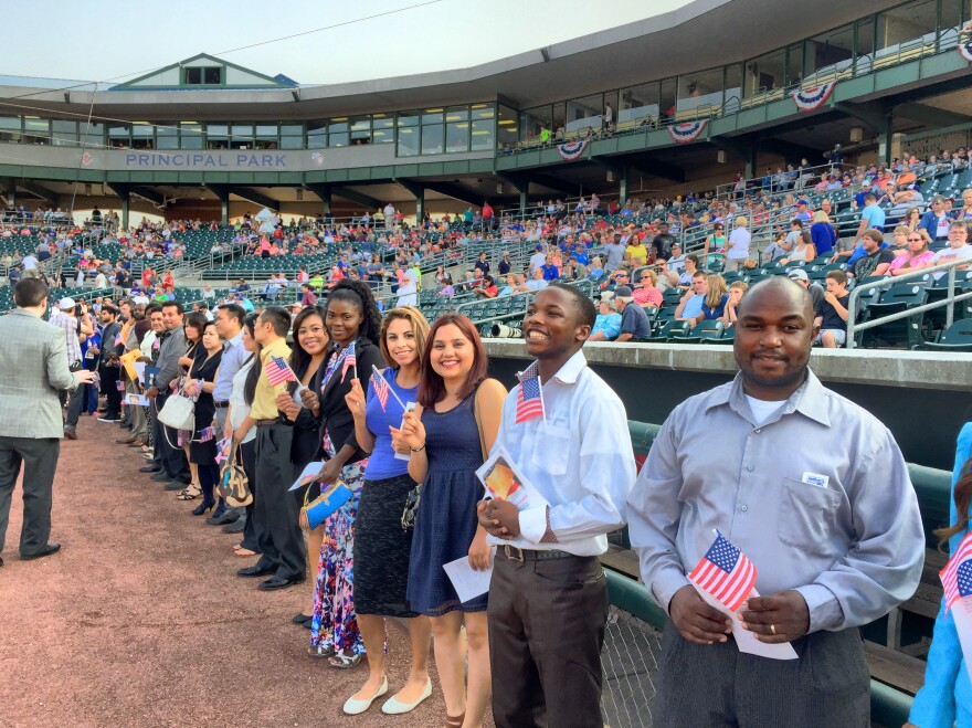 Twenty-eight immigrants will become naturalized U.S. citizens at the July 4th Iowa Cubs game in Des Moines.